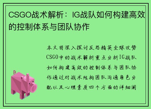 CSGO战术解析:IG战队如何构建高效的控制体系与团队协作