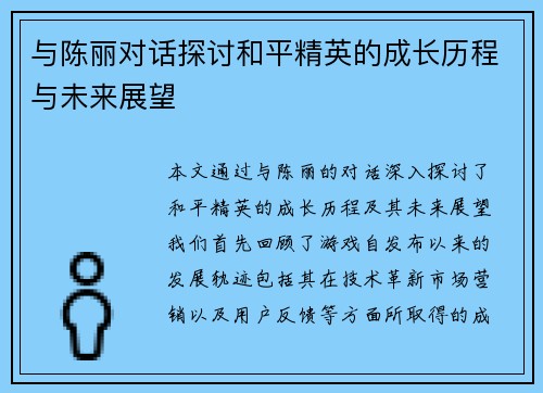 与陈丽对话探讨和平精英的成长历程与未来展望
